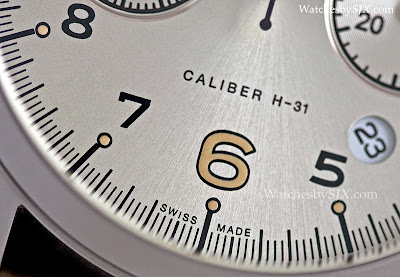 Im Gegensatz zu den früheren Neuauflage-Uhren, aber der Khaki Pilot Pioneer Auto Chrono ist Teil der regelmäßigen Sammlung. Es ist in zwei Zifferblattfarben erhältlich, schwarz wie die Original 6BB war, und auch ein silberner Champagner, der hier abgebildet ist.