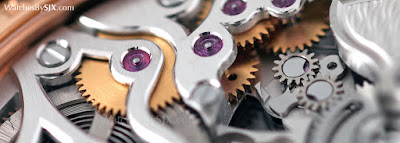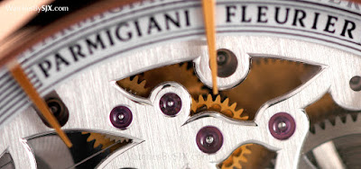 Wie andere Vaucher-Bewegungen (es ist eine Schwesterfirma von Parmigiani), ist der Bewegungsbau auch qualitativ hochwertig. Nehmen wir zum Beispiel das frei gefederte Balance-Rad hat einstellbare Massen an seinem Rand, ein Merkmal, das oft in höheren Endbewegungen gefunden wird. Wie viele andere zeitgenössische Skelettuhren sind die Brücken mit einer einfachen, geraden Körnung fertig, aber die Qualität der Bewegungsdekoration ist in den Details sichtbar. Die wunderbar abgeschrägten Kanten der Brücken oder die kreisförmigen Körner auf den Zahnrädern.